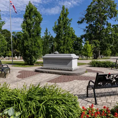 Fairview Cemetery is home to two Fields of Honour where approximately 200 veterans and war dead are laid to rest. Each veteran’s resting place is marked with a uniform headstone, standing in alignment as a symbol of unity and honour. The areas are beautifully landscaped, with ceremonial Vimy Oak trees and flag gardens, making them peaceful places to visit and reflect.