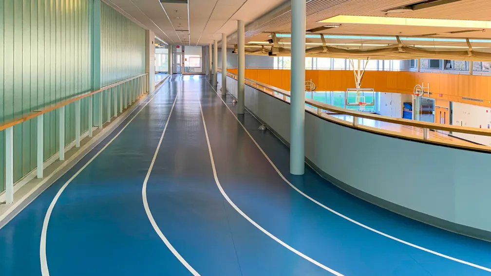 - Two-lane, 240-meter-long rubber track for walking and jogging
